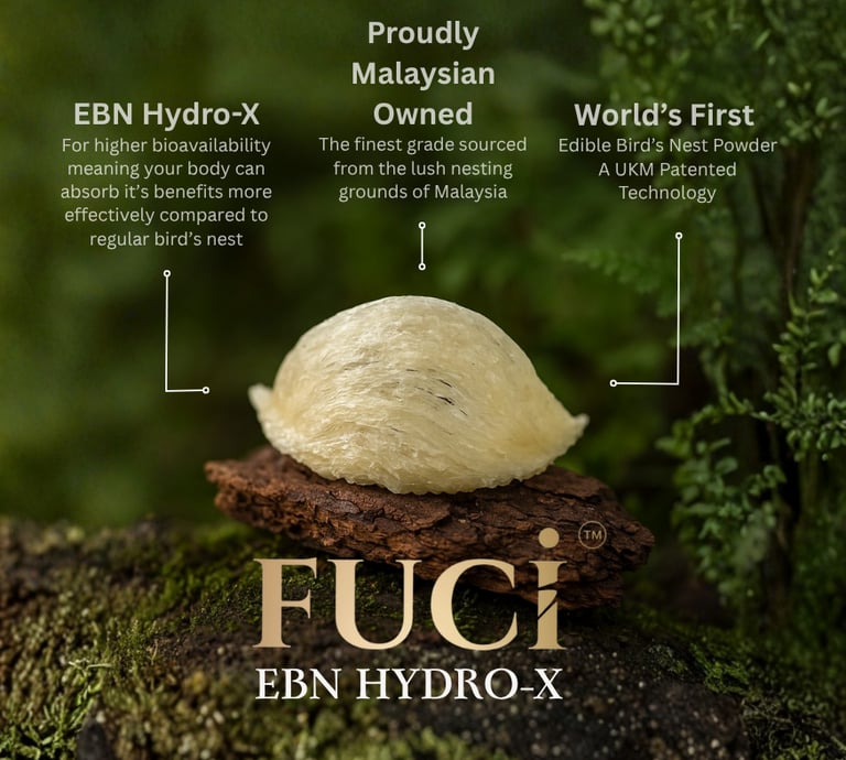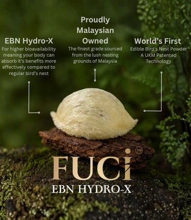 " We are humbled by the UKM-patented technology that made this possible. Today, we can finally harness the purest benefits of edible bird's nest (inside and out) through science that truly elevates wellness. All thanks to the breakthrough of EBN Hydro-X "